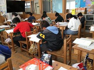 6年生の教室では、算数でまとめの学習をしていました。復習問題に取り組み、これまで学習したことを確認していました。皆真剣に取り組んでいます。高学年になるにつれ、集中して取り組める時間も長くなっていくのだなと改めて感じました。