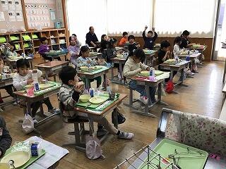 12月18日(水)、今日の給食は、一足早いクリスマス献立でした。メニューは、ハンバーグケチャップソースかけ、はなやさいサラダ、コーンスープ、げんりょうパン、セレクトケーキです。子どもたちは、イチゴのケーキかチョコレートケーキのどちらかを選びました。教室に行くと、「ケーキすごくおいしかった。」「なんだか食べちゃうのがもったいない。」といった声が聞こえてきました。みんなとてもうれしそうでした。