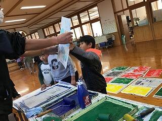 2年生は、図工で紙版画に取り組んでいました。自分たちで作った版にローラーで色を付けると、糊付けしたはずの版が、はがれてしまいます。それでも丁寧に修正しながら版を刷っていました。根気強く自分で頑張る姿に、成長を感じました。