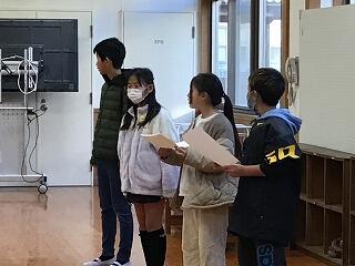 12月20日(金)、計画委員会が企画したブロックごとのあいさつ表彰が行われました。1・2年生ブロックの集会を担当したのは5年生の計画委員です。計画委員から、いつも挨拶を元気にしている児童に賞状が渡されました。「これからも元気なあいさつをしていきましょう。」という呼びかけに、1・2年生児童も大きな声で返事をしていました。計画委員の頑張りで、あいさつ運動がますます広がっていきそうです。