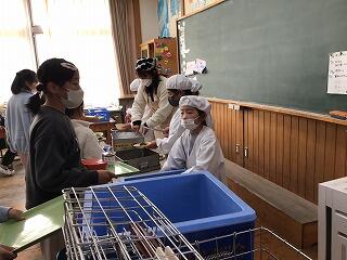 担任の先生が午後から出張なので、給食の準備の様子を見に行くと、子どもたちは自分たちでどんどん準備を進めていました。隣のクラスものぞいてみると、こちらも手早く準備を進めています。自分たちの力でできることがどんどん増えています。