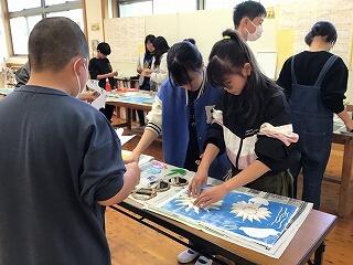 今日は、昨日とは別のクラスが、版画の刷りの活動を行っていました。6年生の版画は多色刷りなので、様々なパーツの版に、自分の好きな色を付けて刷ります。子どもたちは友達の協力を得ながら丁寧に作品を仕上げていました。紙や版を抑えたり、好みの色を作る手伝いをしたり、手助けしてくれる友達がいたからこそ、素敵な作品が完成したのだと思います。時間がたって作品を見返した時に、手助けしてくれた友達の顔が思い浮かぶことでしょう。