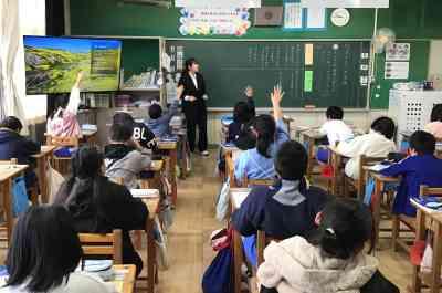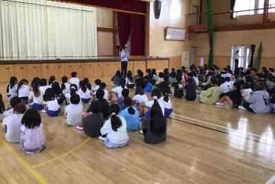 共同調理場の栄養教諭に御来校いただき、食育の授業を行いました。食べ物のもつ働きを理解しながら、いろいろな物をまんべんなく食べる良さを学びました。多くの児童が、「残さず食べる」「嫌いな物でも一口は食べる」などの目標を掲げていました。