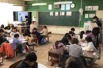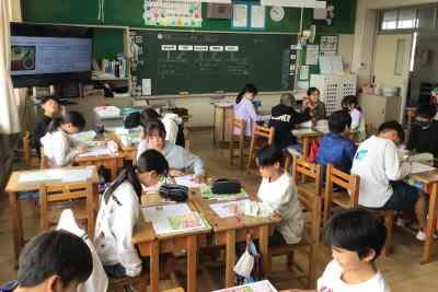 国語で方言と共通語の違いと良さを学ぶ内容で、子どもたちは聞き慣れない方言に興味関心をもって取り組んでいました。クイズづくりの際は、「楽しそう!」の声も聞かれ、次の時間のクイズ大会が盛り上がりそうです。