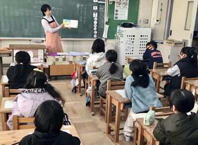 今回は4年生を対象として実施され、「いちばんたいせつなおくりもの」などの読み聞かせの他に、手遊び歌も教えてくださいました。