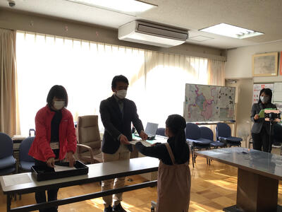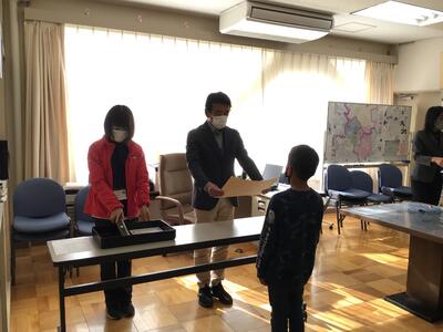 過日の持久走大会の各学年男女1位の児童12名の他、市や県の絵画、作文コンクールの表彰を受けた児童に、校長室であらためて表彰状や記念品等の授与を行いました。【写真は抜粋です】