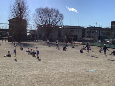 前跳び、後ろ跳び、交差跳び、二重跳びなど学年や技量に応じて挑戦しています。順番を守ってもめ事を起こさず並んでいることも立派だと思います。