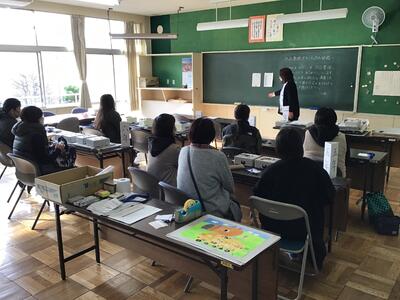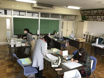 今日と明日の2日間、本校に登録してくださっている学校支援ボランティアの「作品整理ボランティア」の皆さんが、1月に予定している図工作品の出品準備の作業をしてくださっています。2日間で延べ18名の方が午前も午後も作業してくださいます。今日の午前は、作業の様子を教育委員会生涯学習課の職員が視察に来て感心して帰られました。