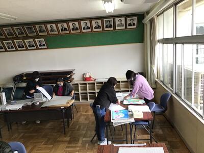 昨日から来てくださっていた図工作品整理のボランティアの皆様には、本日予定された作業を終えていただきました。この場を借りてお礼申し上げます。たくさんの方々が学校の来られ、学校が活気に満ちた一週間でした。