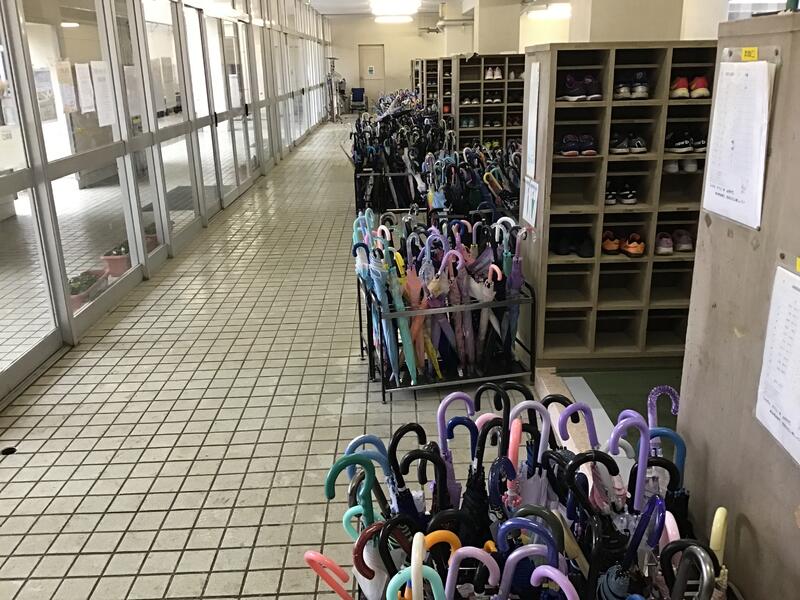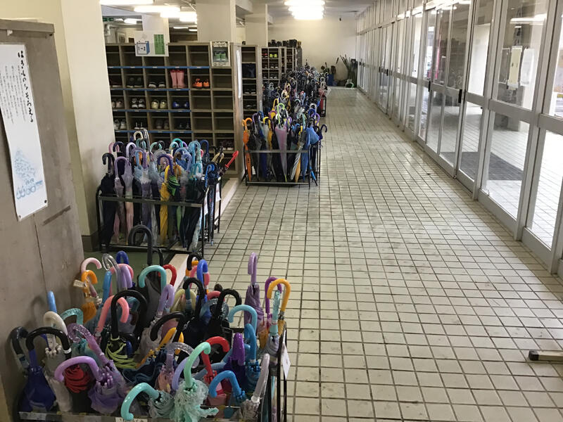 今朝は、12月になって3度目の雨降りでした。朝の昇降口の傘立てが壮観でした。