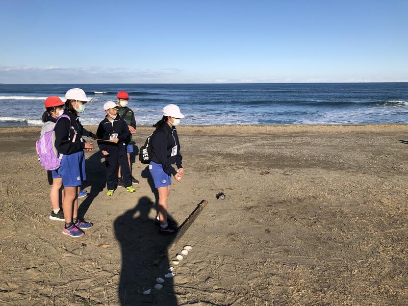 栃木を離れ、海辺を歩くとても有意義な時間を、いつも学校で一緒の級友と過ごすことができました。途中のチェックポイントでは、貝殻を輪の中に投げ入れて、その数を競う活動もありました。眼前に広がる海に大興奮でした!