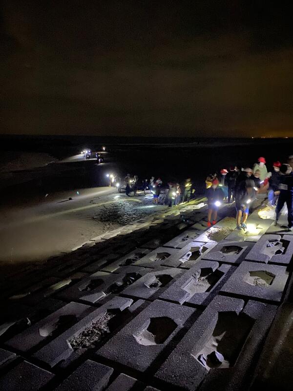 懐中電灯を頼りに防風林を抜け夜の海岸を歩きました。