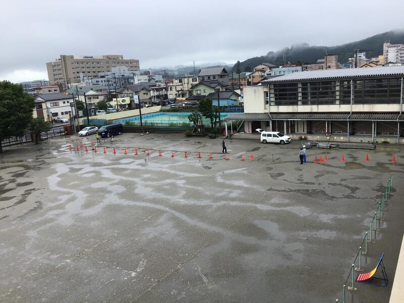 今週は、ちょうど下校時刻の時間帯に雨雲と雷が心配な状態になりました。特に昨日は、雷雨が下校時刻と重なり慌てました。子供たちは教室で待機し、臨時のお迎えのご家族に引き取ってもらいつつ、天候が回復するのを見計らい集団下校するという変則的な動きとなりました。今後も同様なことがあると想定しております。その際は、どうかご協力をお願いします。