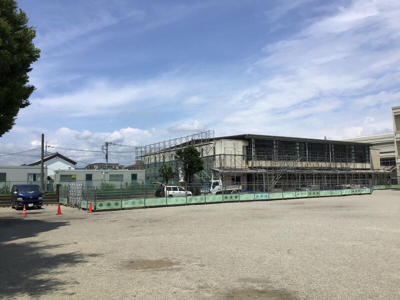 さて、本日の学校はといいますと、体育館工事が4週間目に入りました。今日、館内に掛かっていた校歌や絵画の大きな額が外され、校舎の方に運ばれました。足場が組まれ幕が張られているため、詳しい中の様子は見ることができません。連日猛暑の中作業をされていることを察すると作業される方々には大変なご苦労がかかっていることと思います。