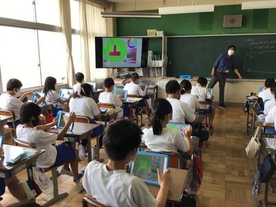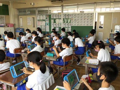 ネット環境が整い、各教室で同時にタブレットを使っても支障がない状態です。今日学んだタブレット操作やプログラミングの仕組みを活用して、より効果的な学習ができるようになることを期待しています。タブレットを上手に使うことが目的ではなく、主体的で対話的な深い学びを進めるためので1つの道具であるという意識の浸透を図っていきたいと思います。