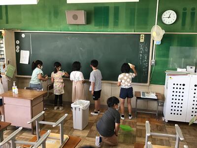 家庭訪問は3日目となります。この期間、給食後は遊ぶ昼休みと清掃の昼休みを1日ごとに交互にして、時間を切り上げ家庭訪問の時間を確保しています。今日は清掃の日でしたので、ほんの少しですが、その様子を紹介します。時間が短いため教室とその周辺を清掃します。高学年の子は玄関や通路など範囲を広げて掃除しています。