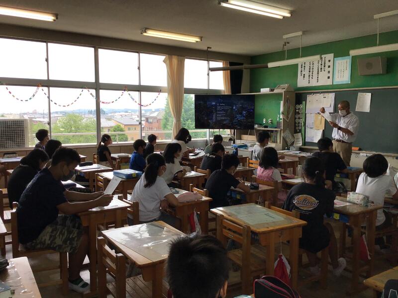校長からは、1学期の「学習、人との関わり方、健康安全」について感じていることと、今年度学校で取り組んでいる身に付けてほしい3つの力を、夏休み中も意識して鍛えてほしいという話がありました。