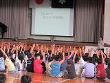 校長先生のお話では、夏休みを前に生活面のルールについて、手を上げながら確認しました。
