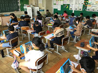 今日の4校時は、たくさんの学級で一斉にタブレットを使用した場合に操作上の支障が起きないかどうかの試験も兼ねた時間でした。