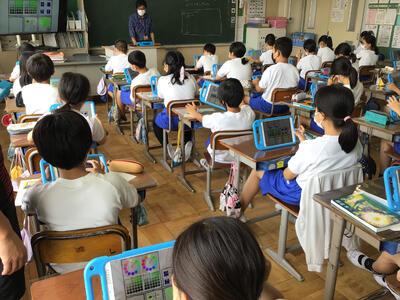 ネット環境が整い、各教室で同時にタブレットを使っても支障がない状態です。今日学んだタブレット操作やプログラミングの仕組みを活用して、より効果的な学習ができるようになることを期待しています。タブレットを上手に使うことが目的ではなく、主体的で対話的な深い学びを進めるためので1つの道具であるという意識の浸透を図っていきたいと思います。