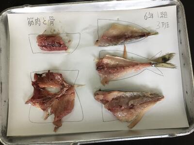 6年生が理科で、「人や動物の体」の学習のまとめと発展学習として、魚(サバ)の解剖を行いました。昨日と今日の2日に渡り、2クラスずつ行いました。