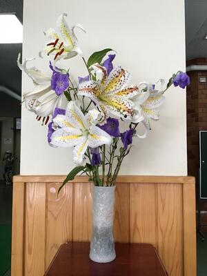 【玄関のユリとキキョウ】
