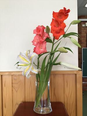【玄関のユリとグラジオラス】