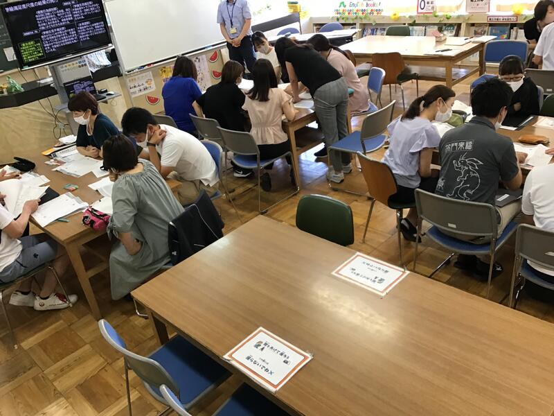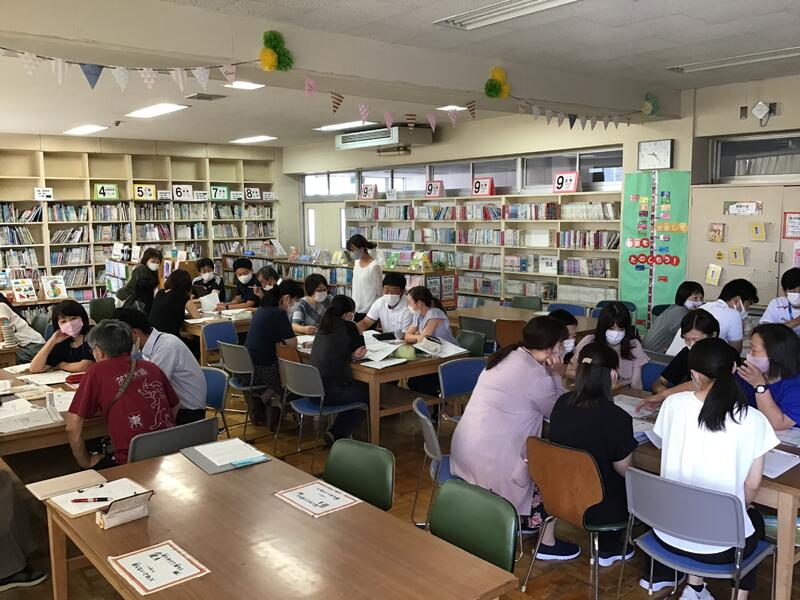 午後は、本校の学校課題(外国語活動)の研修を、低中高学年の先生方が混じったグループを作って行いました。