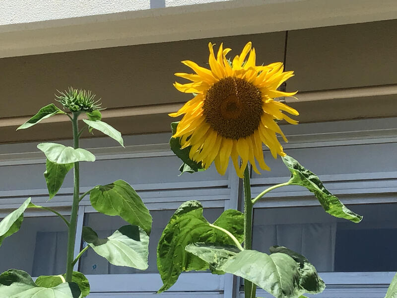 さて、今日は8月8日、昨日は「立秋」、そして明日は夏季休業の折り返し日です。中庭や校庭の花も1週間でその姿を変えています。【写真のひまわりは前回と同じ花を撮影しました】