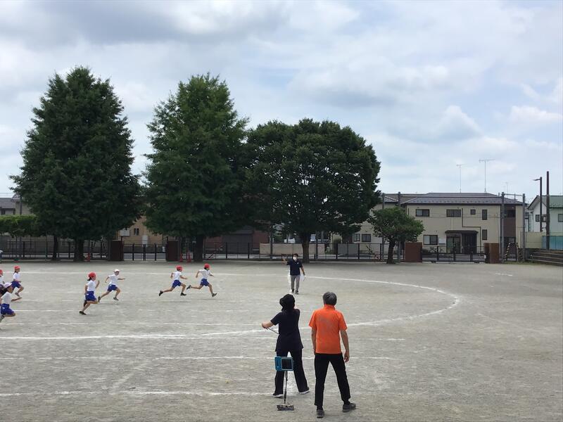 今日も熱中症指数は正午の時点で厳重警戒を示しました。午前中、プールには2年生と5年生が入りました。また、2時間目までに5年生がリレーの選手選考を行いました。直線コースでクラス内選考を行い、トラック一周で学年選考を行って決定しました。