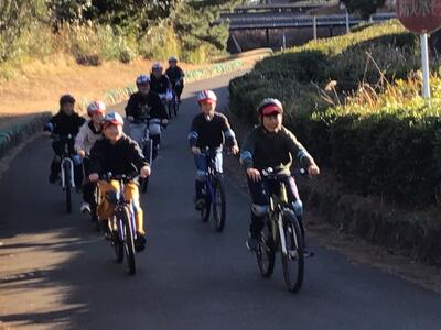 その後は、サイクリングです。施設の外周をみんなで乗りました。