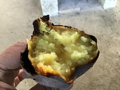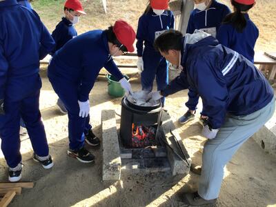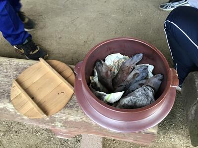 塩づくりをしている間に、係の児童を中心に壺焼きイモを焼きました。