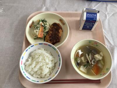 献立:ごはん、カレイフライ、きりぼしだいこんサラダ、いなかじる、牛乳