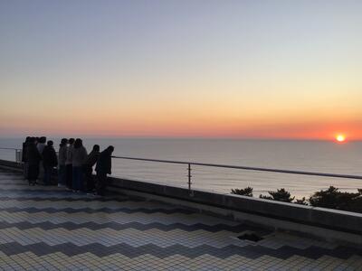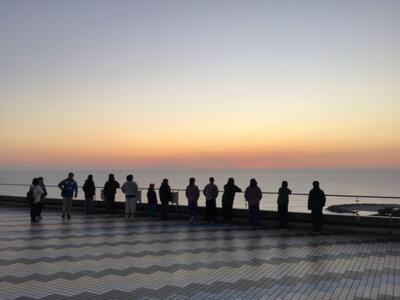 朝6:40 2階 メイン広場から朝日が昇るのを待ちました。