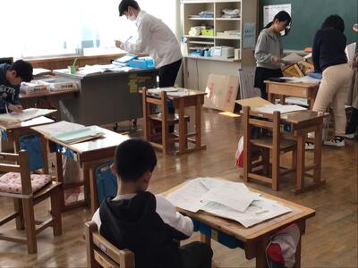 たくさん勉強したね。プリントの穴あけも上手になってきました。