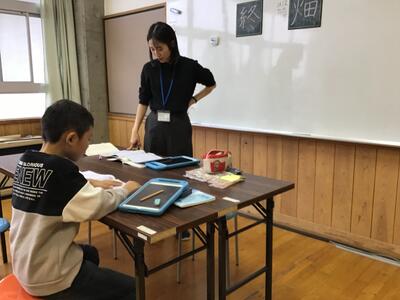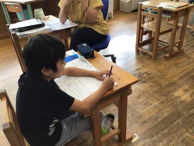 難しい漢字が出てきたね。しっかりドリルに指書きして筆順を確かめています。