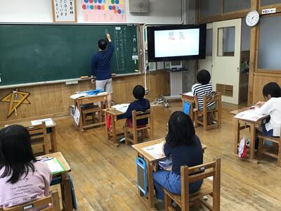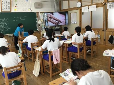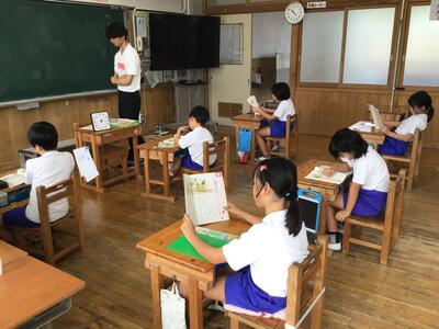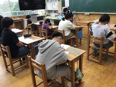 5、6年生 社会科自習「輸入について」読んでまとめています。しーんと静まり返り、集中していますね。
