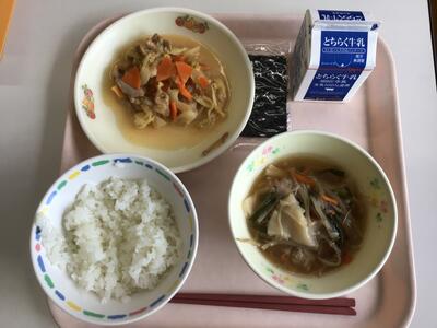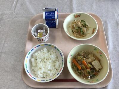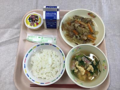 献立:ごはん、なっとう、キムチあえ、すきやきふうに、牛乳