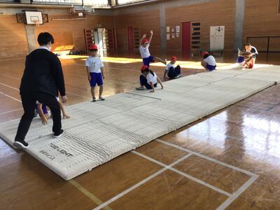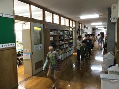 来年度、就学予定のお子さんの健診では、誘導する先生のお話を聞いて、順番に並んで歩き、学校医さんからの健診を受けることができました。