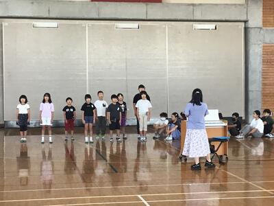 5校時 全校練習を行いました。運動会で踊っているので、みんな知っている踊りですが、踊り方を忘れてしまっている様子も見られます。本日は、腕や肩の回し方等、細かいところを確認し合いました。