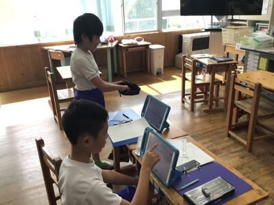(担任が出張)課題が早めに終わったので、タブレットで問題を解いています。