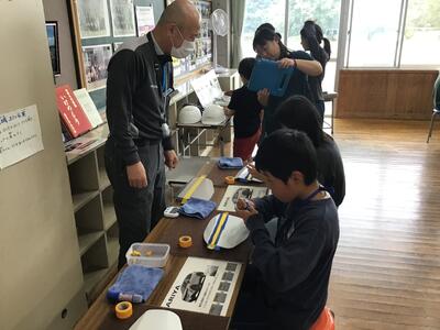 第1部はグループでフレンド号の組み立てを行いました。第2部ではマスキングやボルト締め付けや完成車検査、ピンボード実践の体験を行いました。