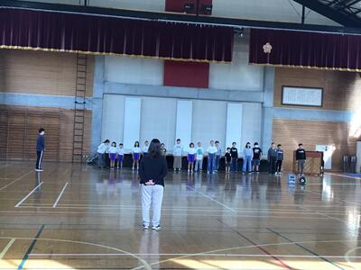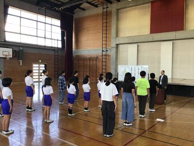 終業式後 全校生で輪になって、前期に「成長できたことの」発表と共有の時間をもちました。