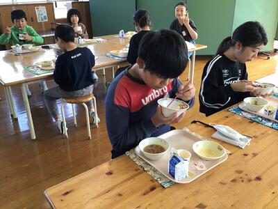全校生で新米をおいしくいただきました。ボランティア様 ありがとうございました。