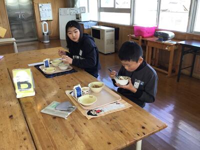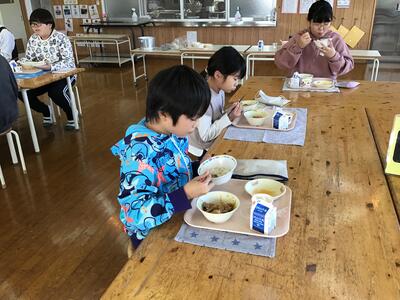 今日の給食のご飯は、先日5,6年生が社会科の授業で稲刈り体験を行った際にいただいたお米です。