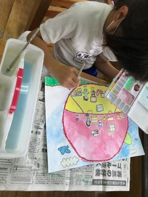 クレヨンや水彩絵の具を使って、思い思いの「びっくりやさい」を描きました。