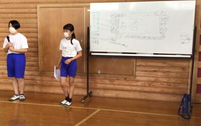 校長挨拶では、学校の学びを支えてくれた地域の方々のお話をしました。そして、「夏休みは、地域に出て、いろいろな人と関わり、学校ではできない学びをたくさんしてください。2学期が始まったら、夏休みの出来事をたくさん聞かせてください。」と話しました。