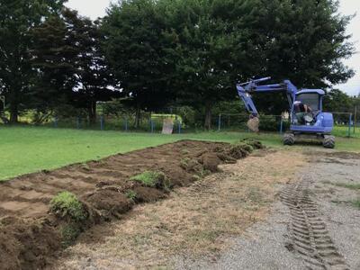 重機で校庭の雑草を一網打尽にしてしまったのだ。