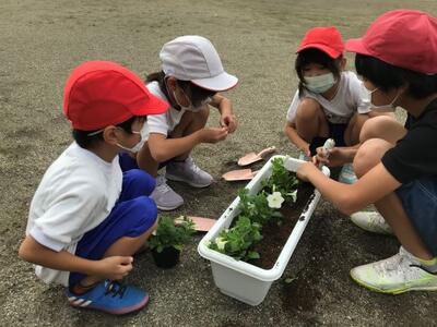 6月に贈呈された「人権の花」が、すくすくと育っています。