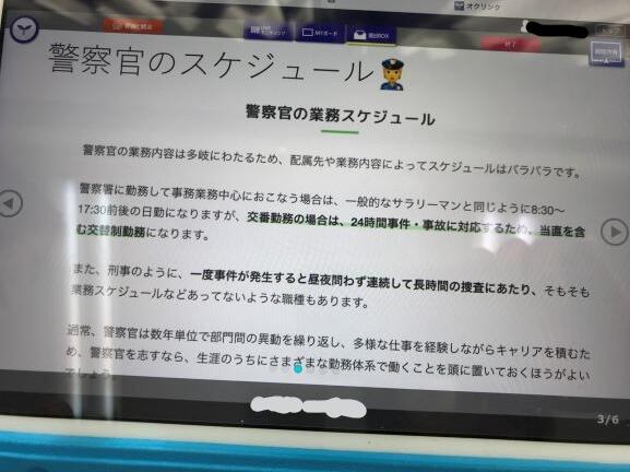 「警察官のスケジュールはとても大変です。僕は警察官になるためにとても努力しようと思います。すごい大変そうですががんばります。僕は警察官になる(ことが)夢だったけどそんなに難しくて足りない(こと)とかスケジュールがあるなら、もっともっと勉強して、中学、高校、大学受験を全部合格させたいです。僕は検察官(警察官)にとって(採用して)もらいたいです。なので僕はがんばります。」